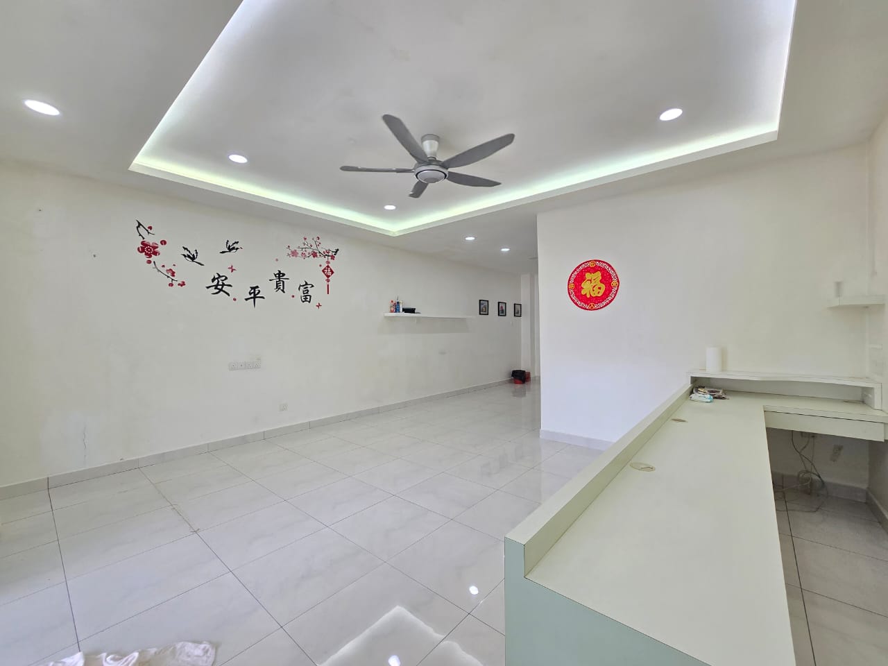 Renovation: Fully mosaic, stainless steel auto gate, kitchen table top and cabinets, Plaster Ceiling, balcony extend, living room extend 4ft, back full extend.
